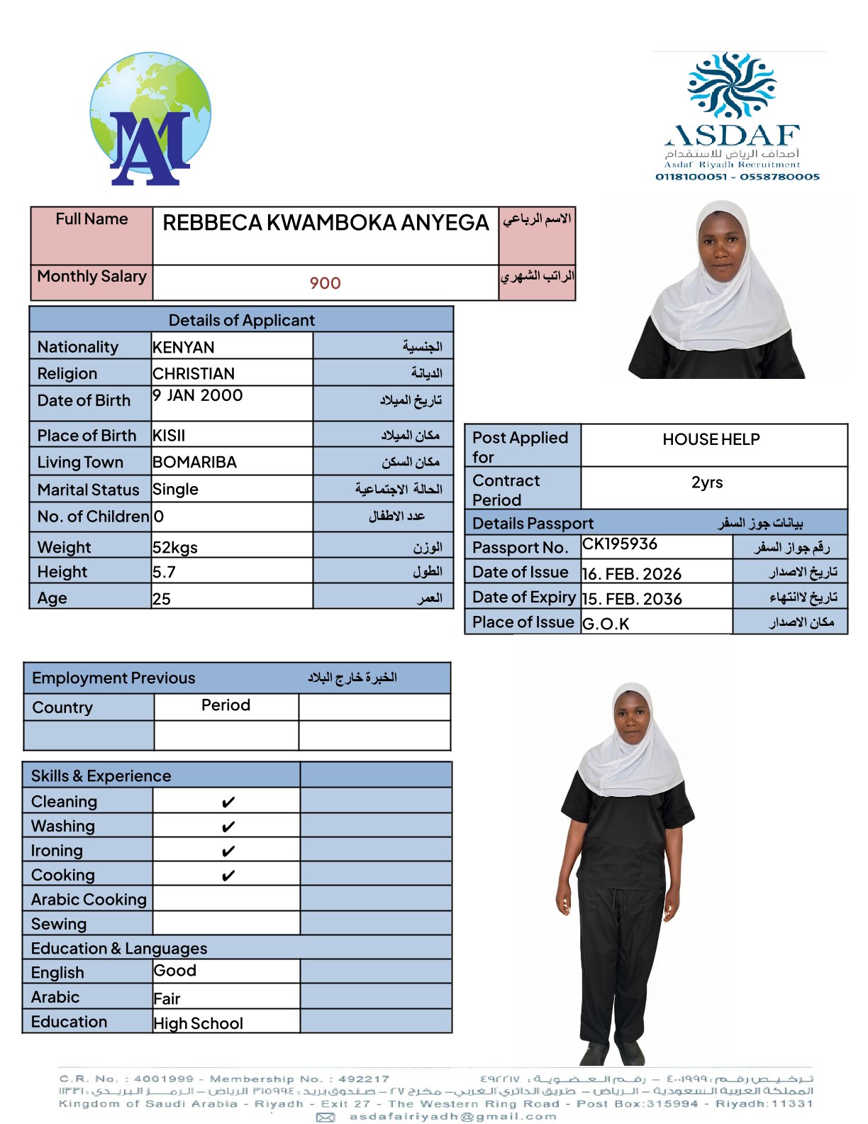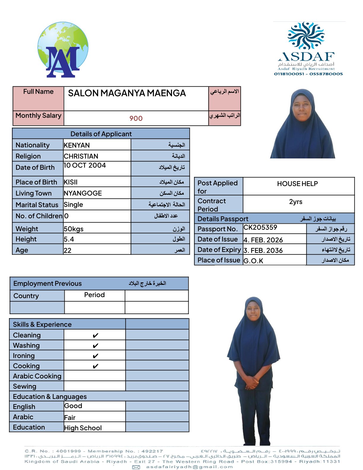 عامله منزليه
