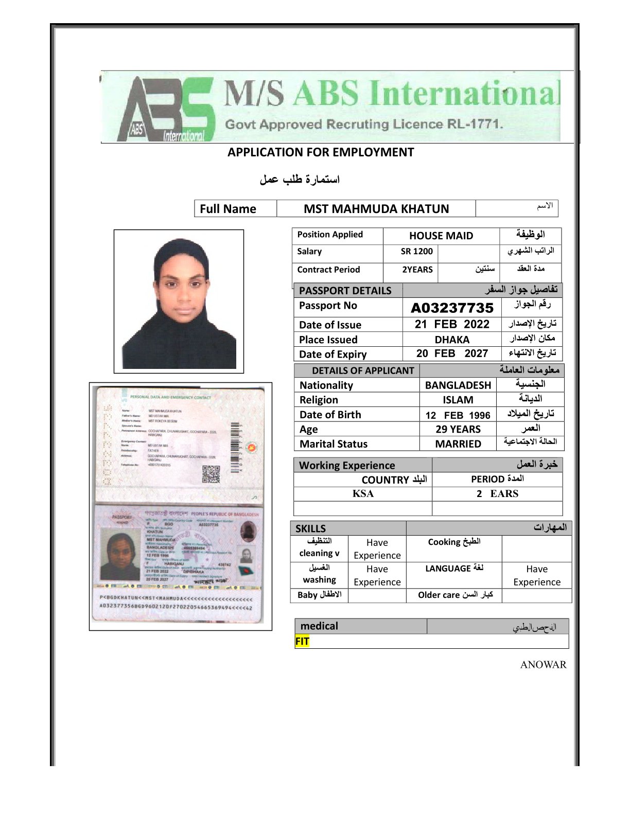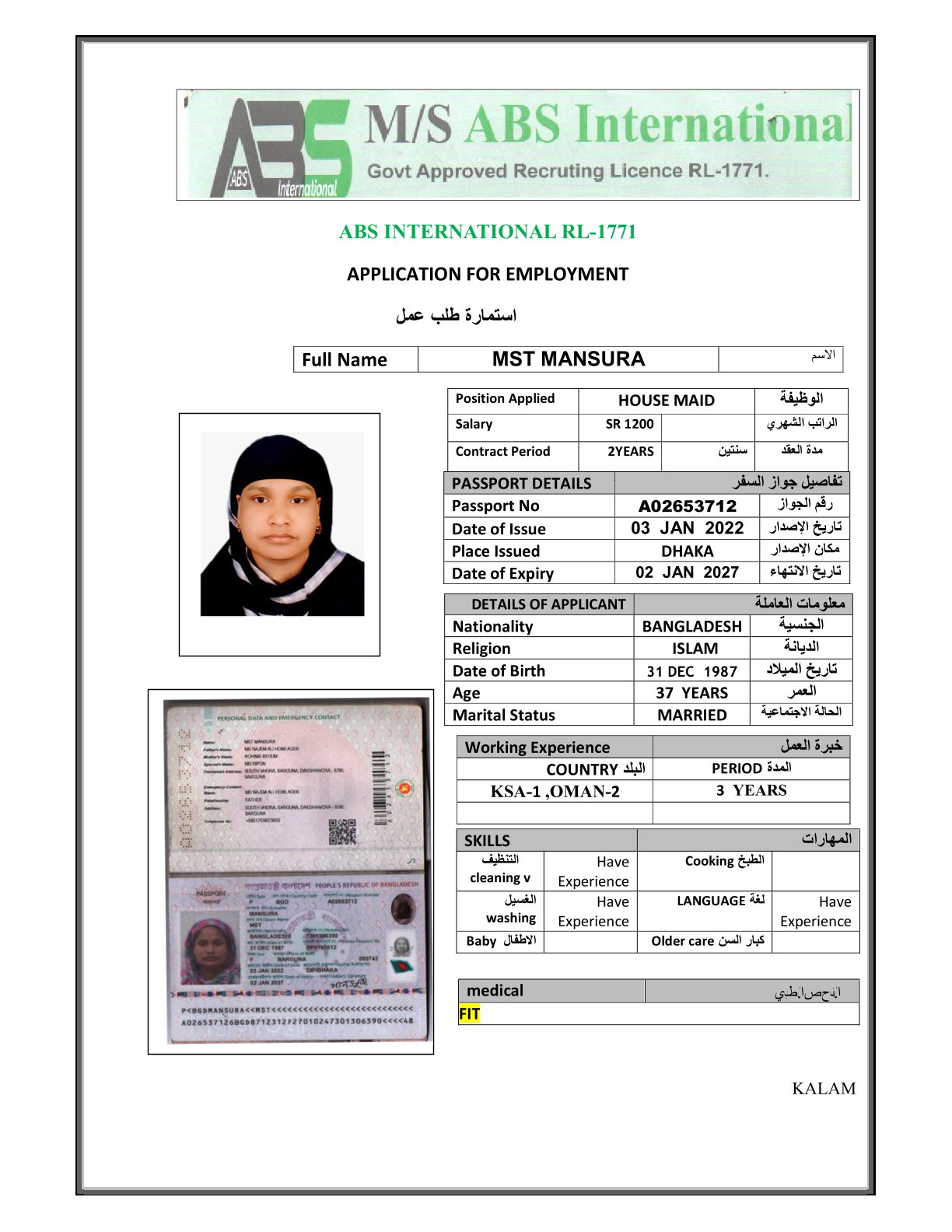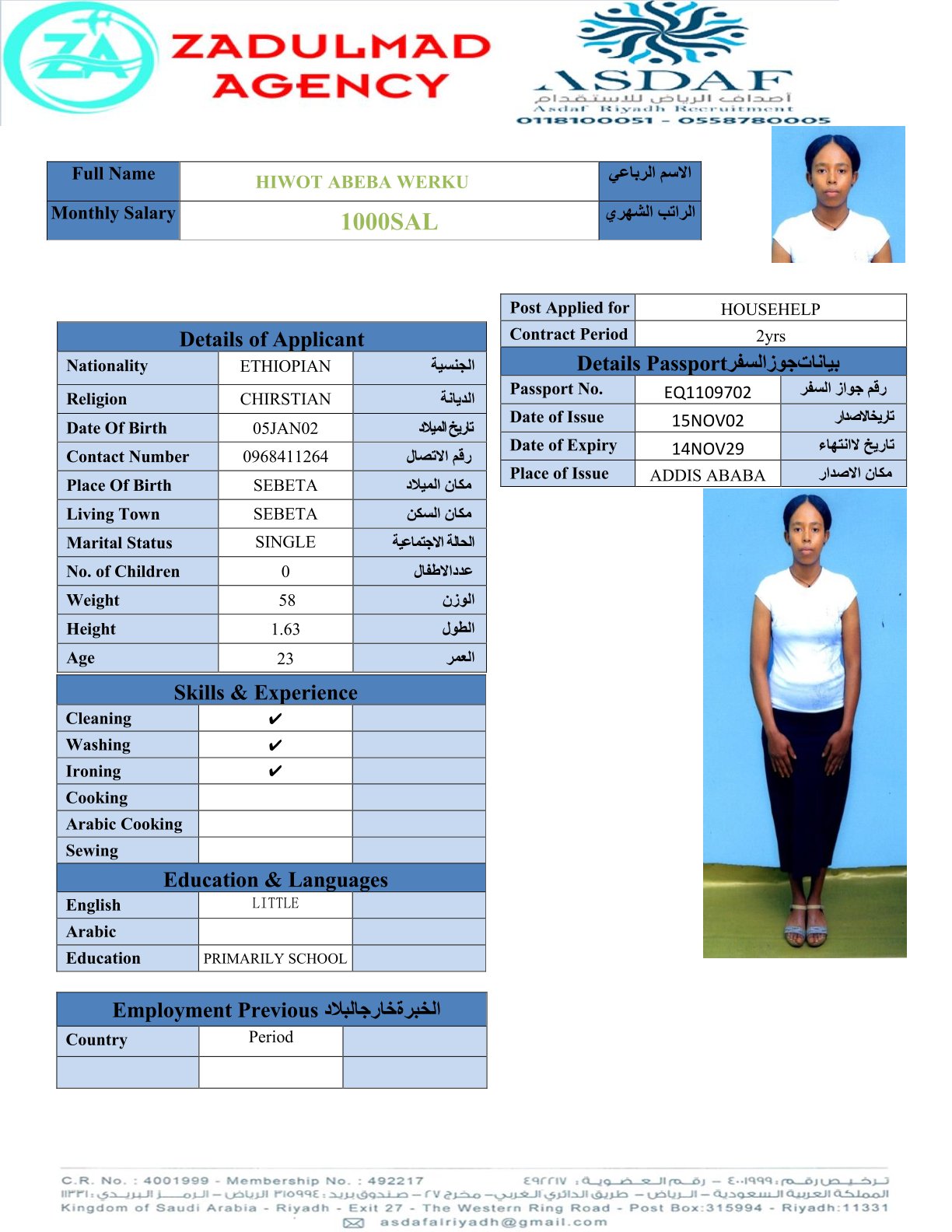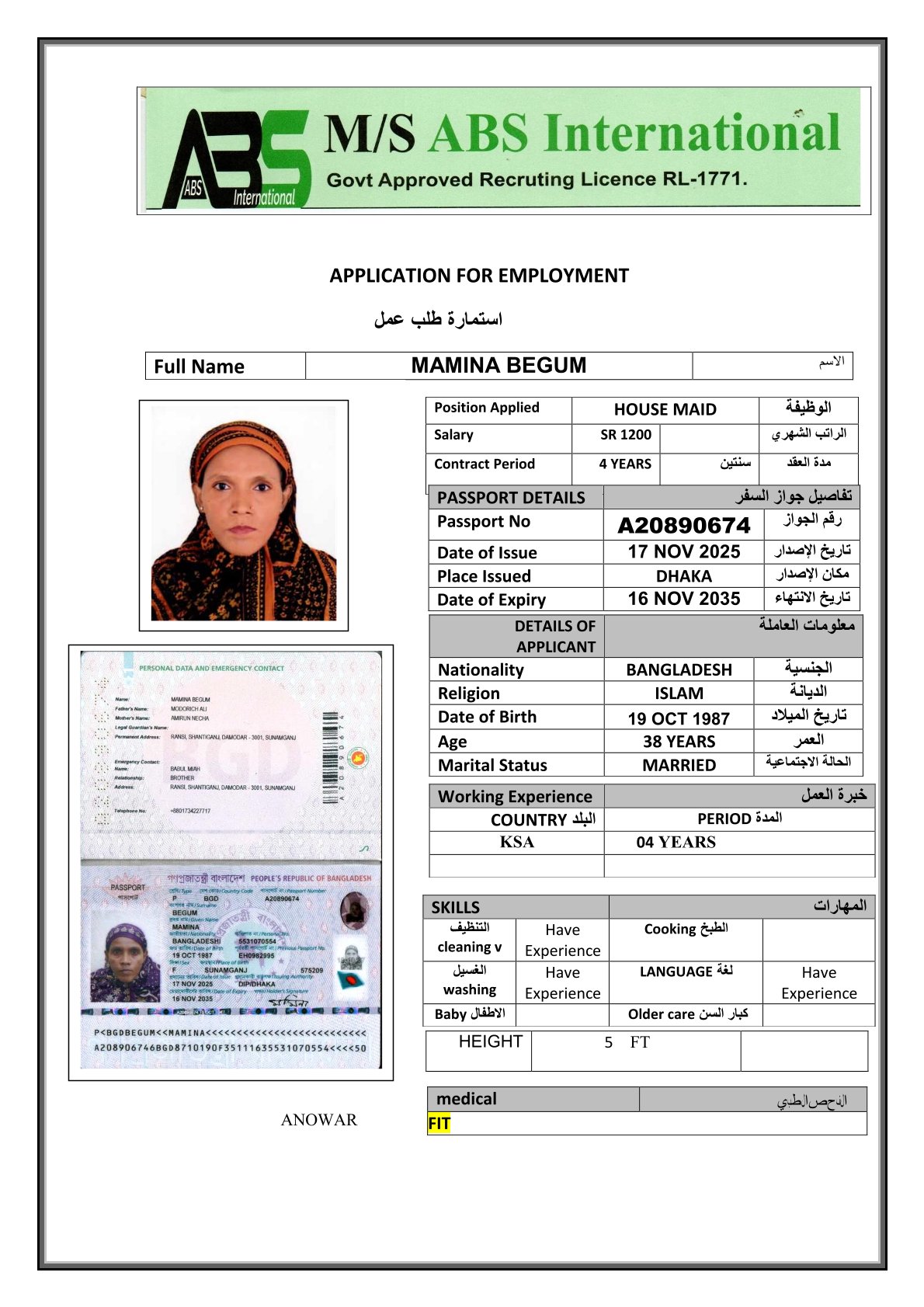 عامله منزليه