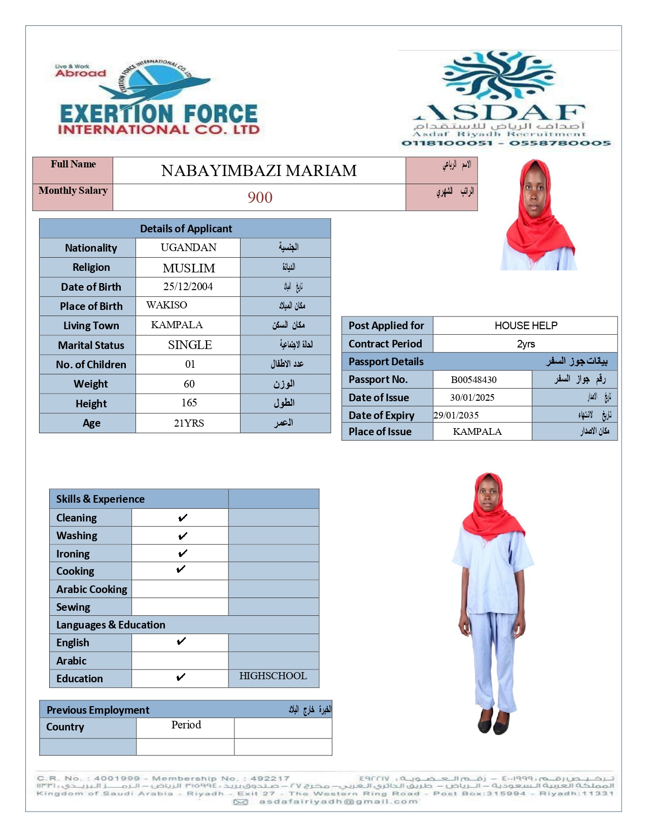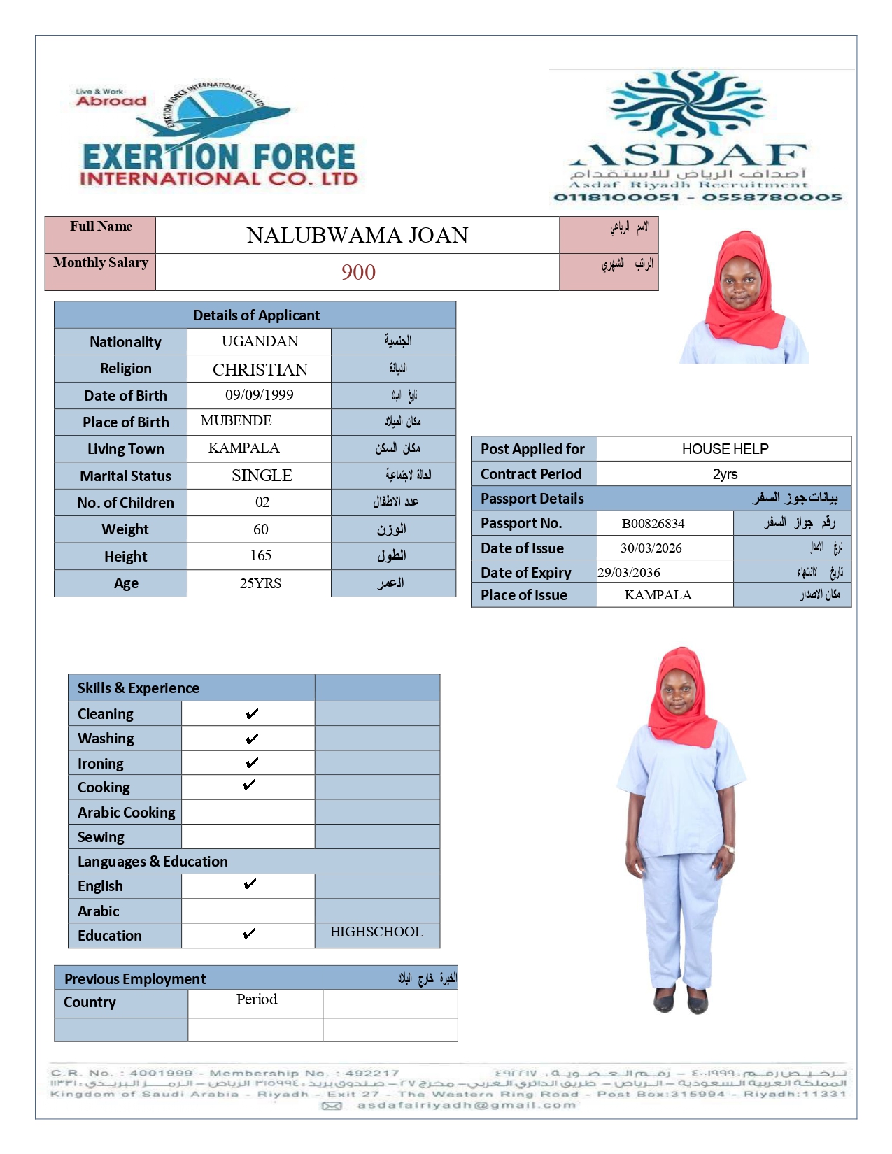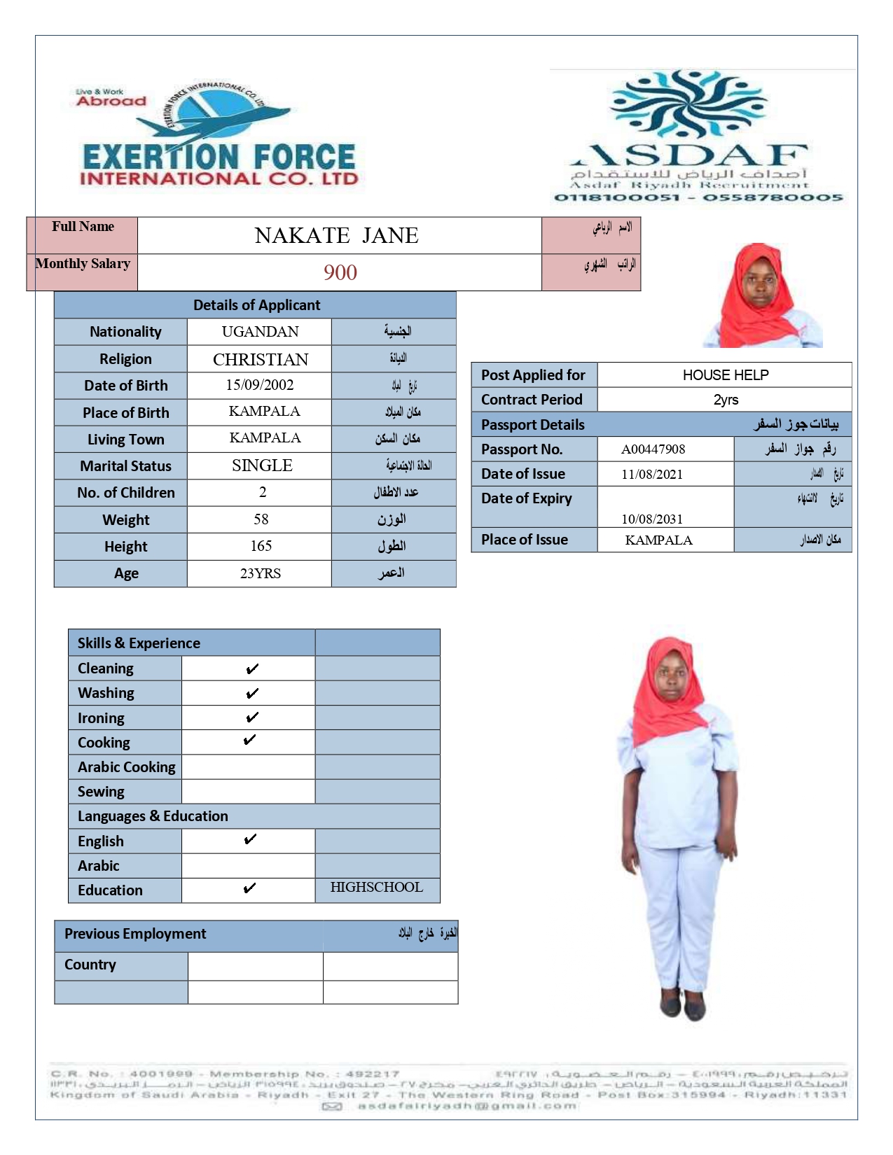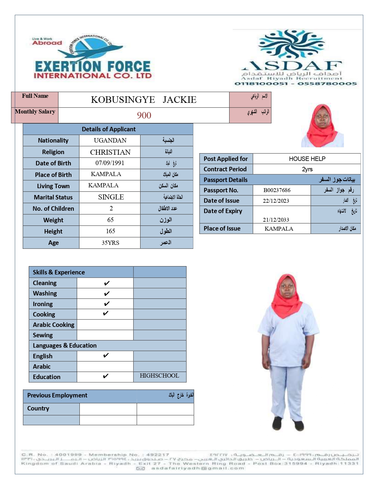 • رقم الجواز :