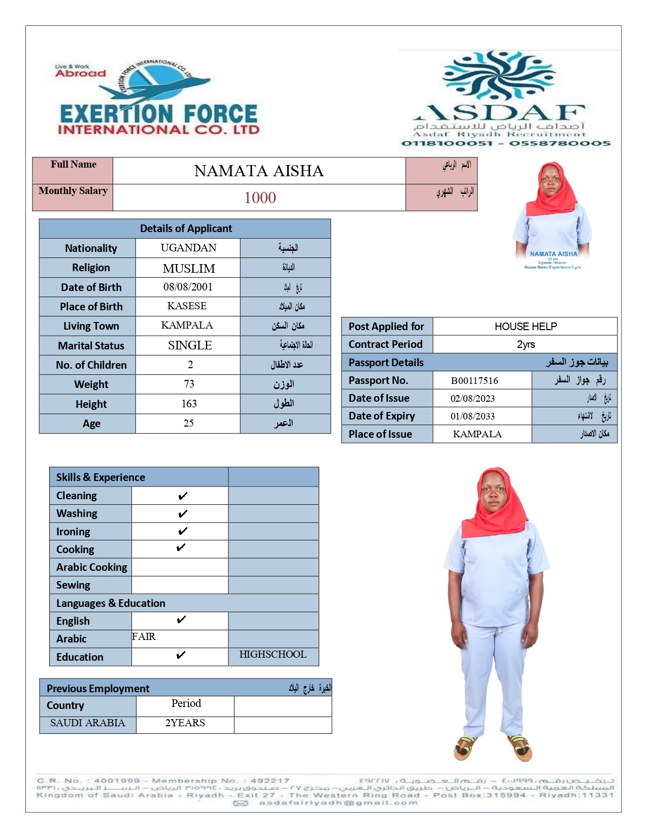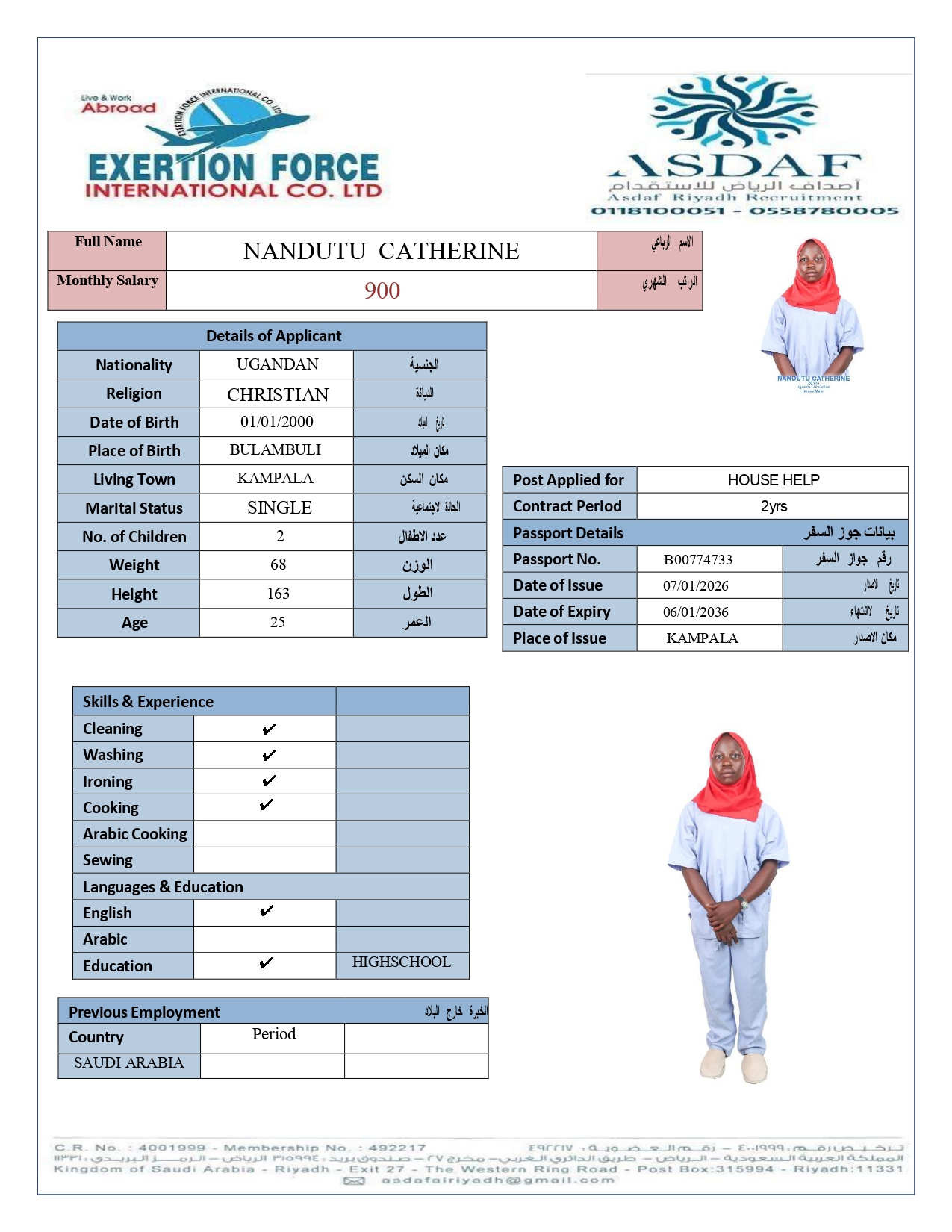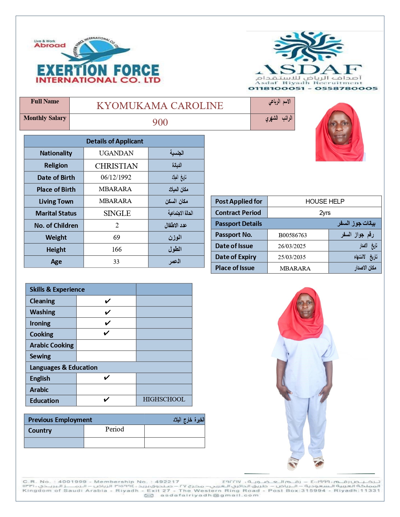 • رقم الجواز :