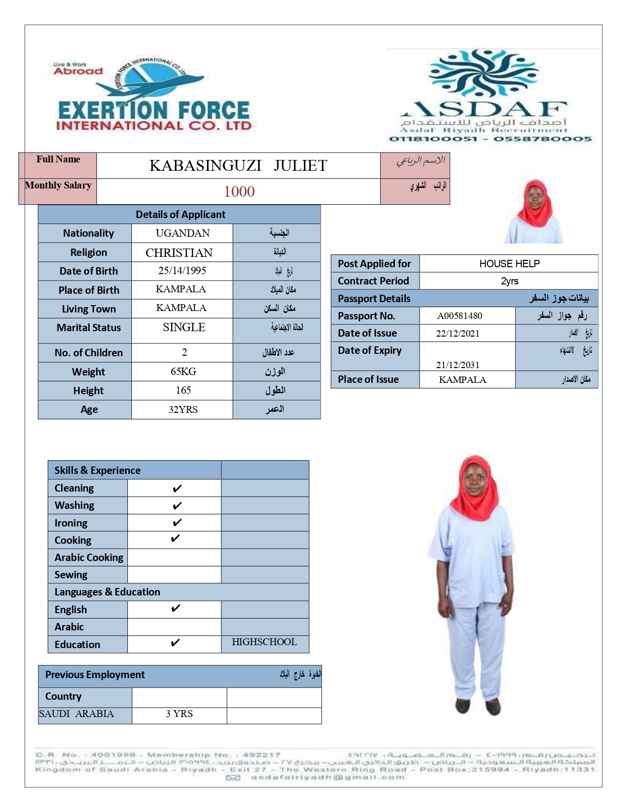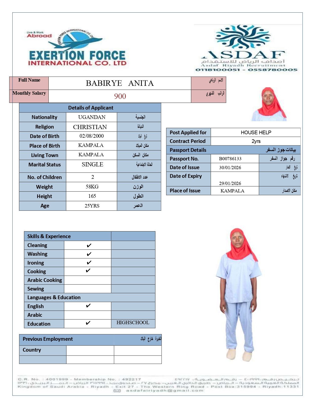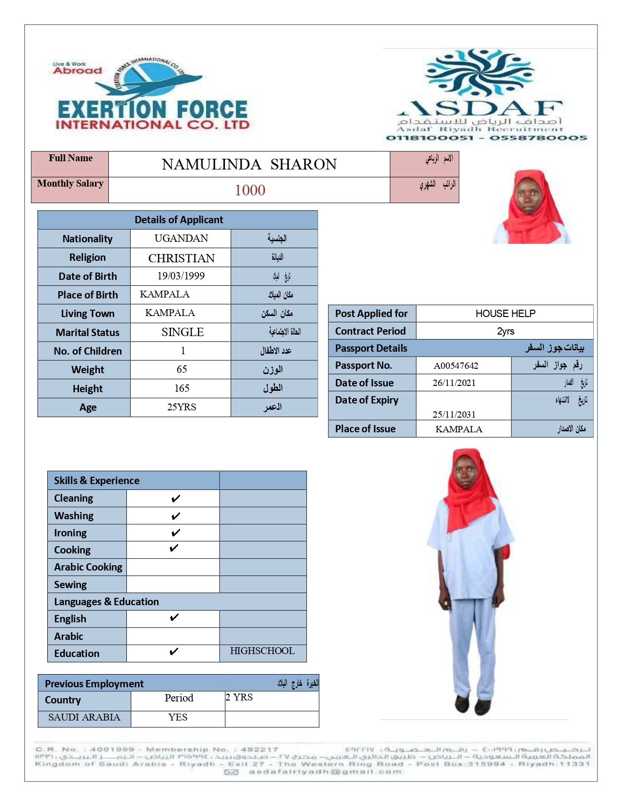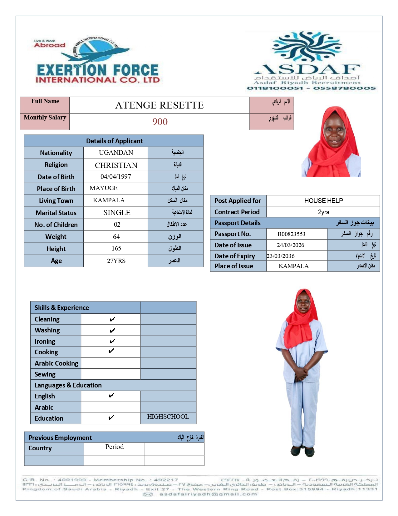 • رقم الجواز :